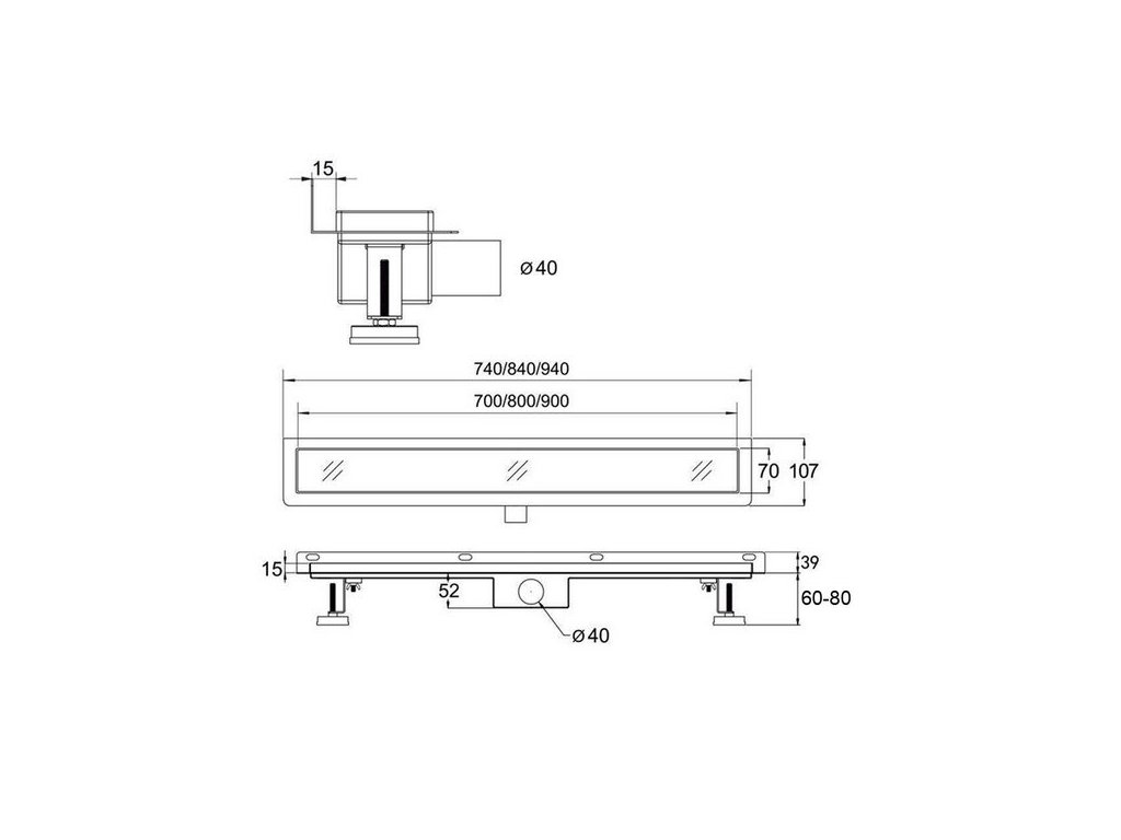 Odtokový sprchový žlab ke stěně 70 cm, vč. roštu TILE