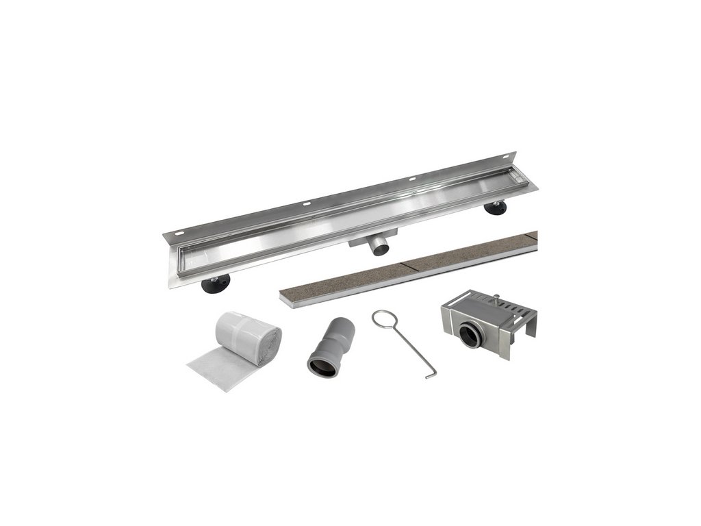 Odtokový žlab je dodáván včetně roštu TILE. Rošt je možné použít jako variantu, kdy je vidět jednolitá nerezová plocha, nebo je možné do roštu nalepit přímo dlažbu. Obě varianty působí velmi jednoduše a čistě, přičemž druhá varianta udělá ze žlabu nenápadný doplněk sprchového koutu, který skvěle splyne s ostatní dlažbou.