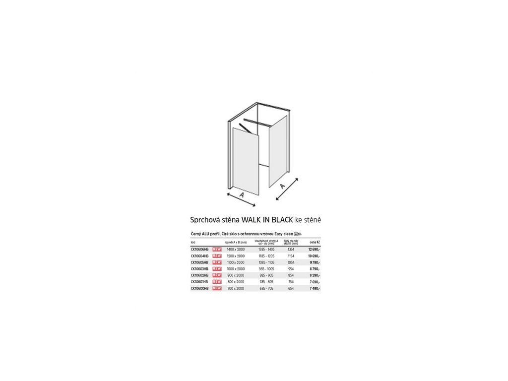 Sprchová stěna WALK IN NOVEA black 70 x 200 cm Hliníkové profily v barvě černé, sklo čiré, síla skla 8 mm