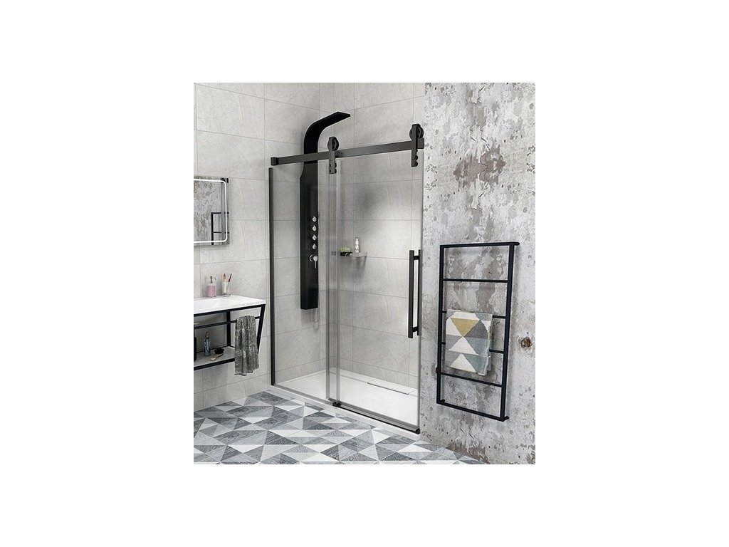 Na výběr jsou hliníkové profily a pojezdy ve dvou barevných variantách – chrom, matná černá. V matné černé působí celý kout elegantním dojmem. Sladěním se všemi doplňky v koupelně tvoří dominantní prvek.